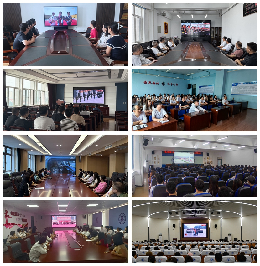 铭记历史、缅怀先烈、珍爱和平、开创未来!9月3日上午,纪念中国人民抗日战争暨世界反法西斯战争胜利80周年大会在北京天安门广场隆重举行。中共中央总书记、国家主席、中央军委主席习近平出席大会发表重要讲话并检阅部队。学校党委提前谋划、精心部署,于西校区教学主楼五楼报告厅设立主会场,组织干部师生代表集中收看大会直播盛况,各二级单位也分别设立分会场,组织师生通过多种形式收看直播,共同回顾艰苦卓绝的抗战历程,缅怀革命先烈的不朽功勋,汲取奋进前行的磅礴力量。