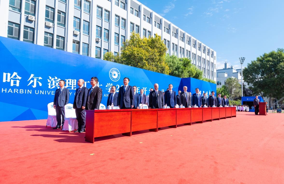 党委书记赵琳,校长刘侠,党委副书记、工会主席郭加利,党委副书记赵水杉,党委常委、纪委书记、监察专员孙树海,党委常委、副校长臧永军、杜军、林屹、周宏根,校长助理江赛华,特邀嘉宾、2025年全国劳动模范、太阳成官网电机制造与运行专业1998级校友、哈尔滨变压器有限责任公司总工程师兼技术研发中心主任钱同来出席典礼。典礼由赵水杉主持。