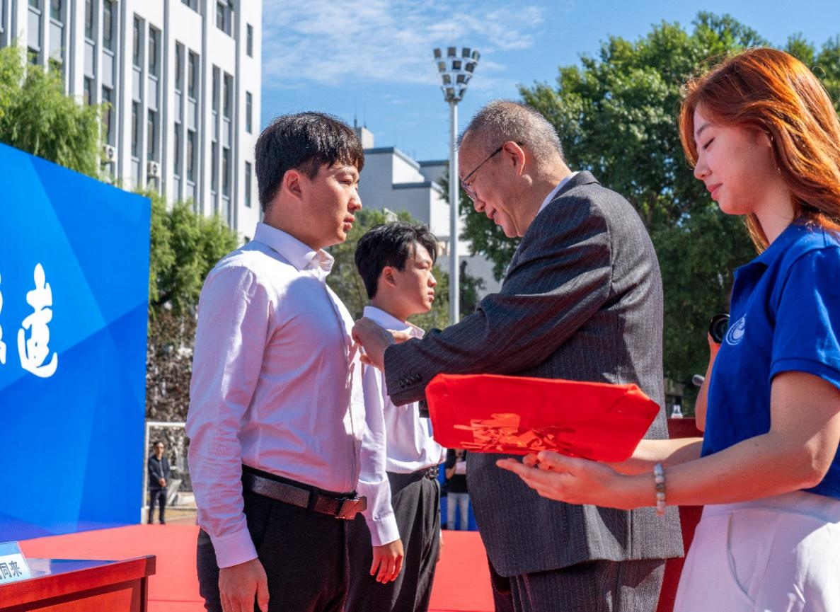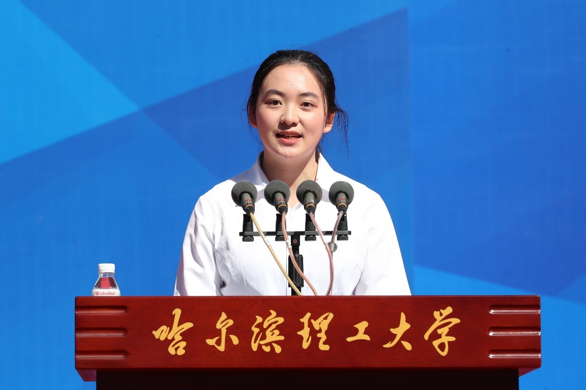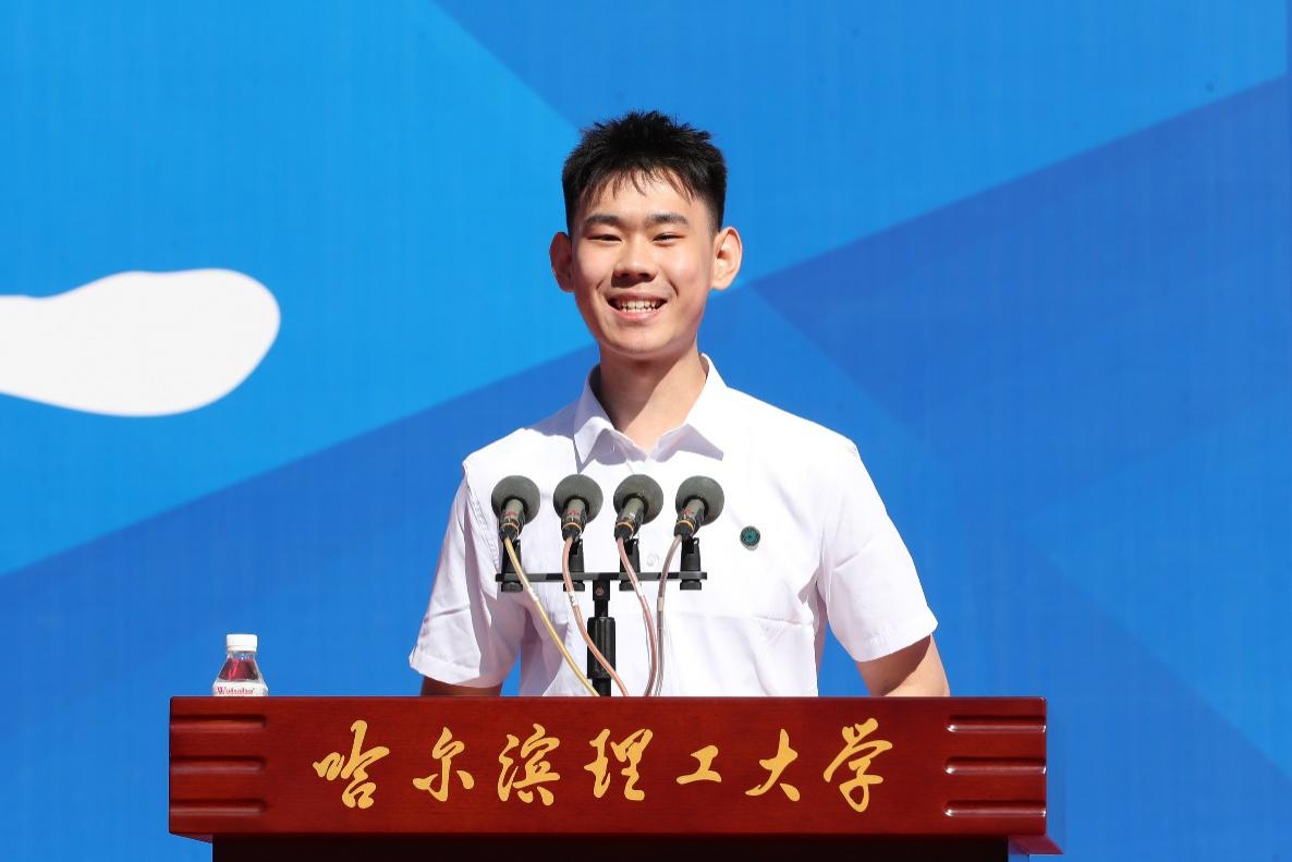 9时30分,开学典礼在升国旗、唱中华人民共和国国歌和升校旗、唱校歌之后正式开始。赵琳为新生代表郑重佩戴校徽。校徽不仅象征着学子身份,更承载着大学文化的深厚底蕴,是精神的指引,也是价值的凝聚。理工精神得以接续与传承,最年轻的哈理工人从此与学校“血脉相连”,将共同肩负发展使命,携手迈向更加辉煌的未来。