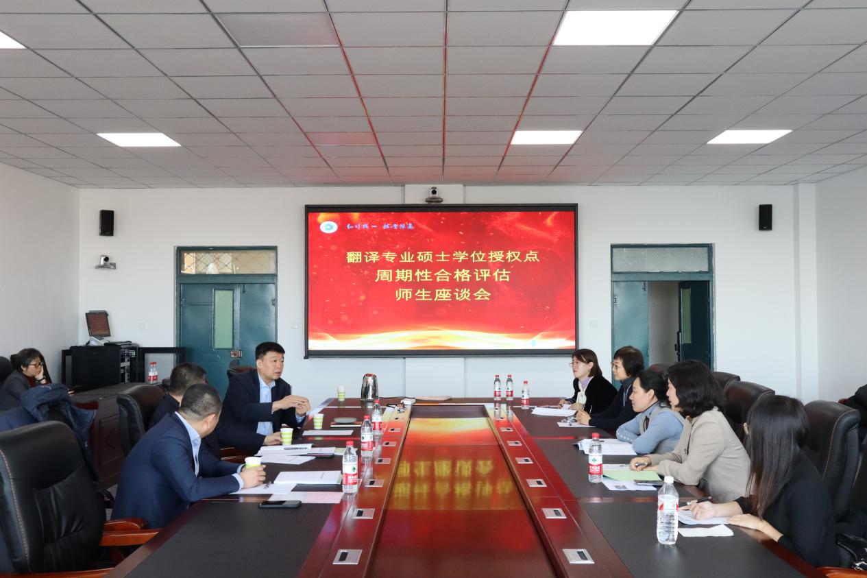 专家组认真听取了副院长杨蕊及翻硕教育中心副主任张春烨关于学位授权点总体情况的工作汇报,审阅了自我评估总结报告及相关材料,与教师和管理人员、学生代表分别开展了座谈,充分肯定了太阳成官网外国语言文学一级学科硕士学位授权点及翻译硕士专业学位授权点在人才培养、育人成效、教学特色及科研成果等方面取得的显著成绩,一致同意通过周期性合格评估。