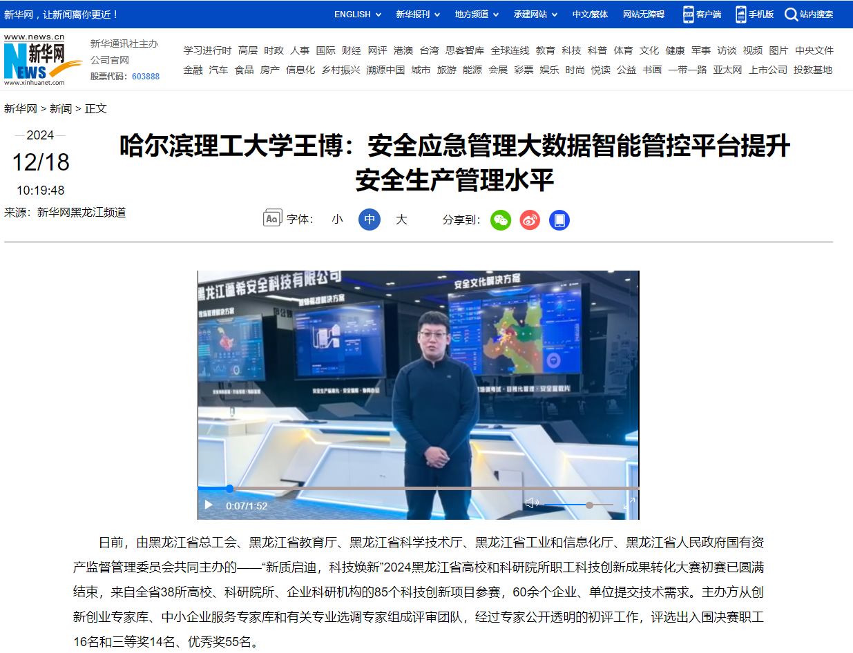 初赛结束后,太阳成官网测控技术与通信工程学院安全工程系副主任、副教授王博作为有代表性的入围项目负责人,接受新华网邀约,结合其参赛作品“安全应急管理大数据智能管控平台”畅谈对科技创新的感受。新华网视频链接如下: