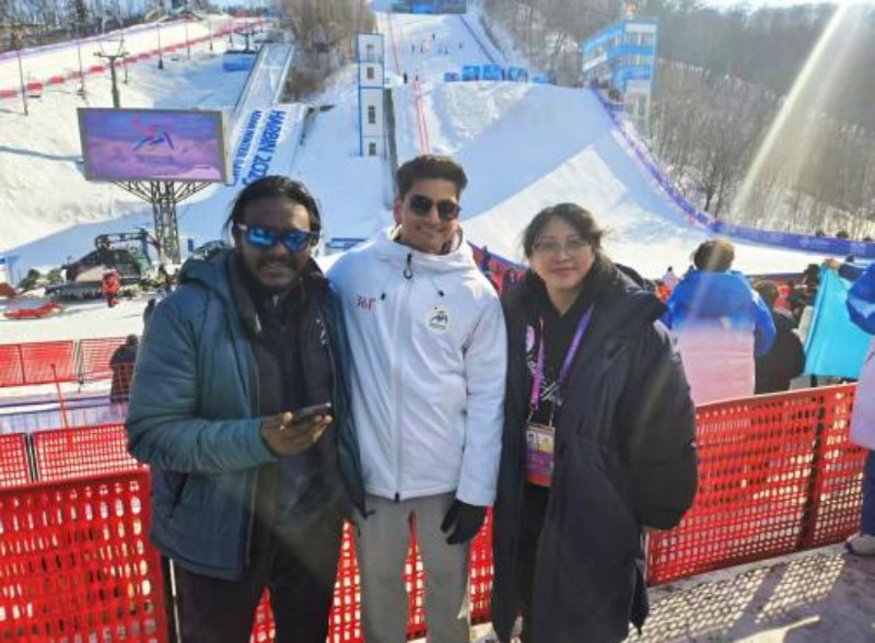 王泳钦老师帮助沙特运动员找回背包和雪板