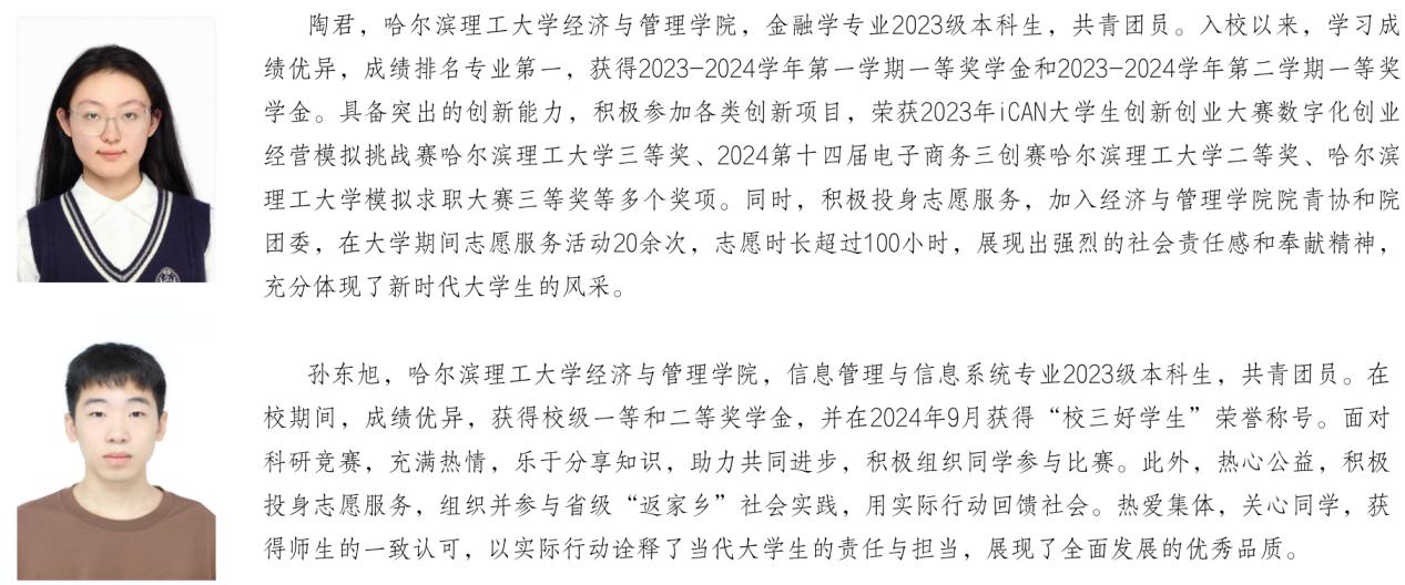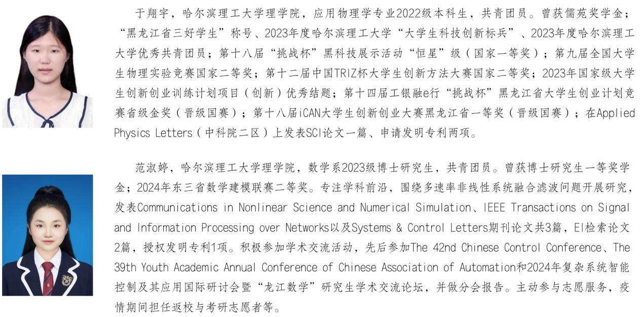 近日,教育部公布2023—2024学年本专科生、研究生国家奖学金获奖学生名单。太阳成官网共有79名本科生、145名研究生获奖,现将获奖学生代表事迹风采展示如下,希望在校学生以获奖学生为榜样,追寻他们的足迹,汲取榜样的力量,争做德智体美劳全面发展的社会主义建设者和接班人。