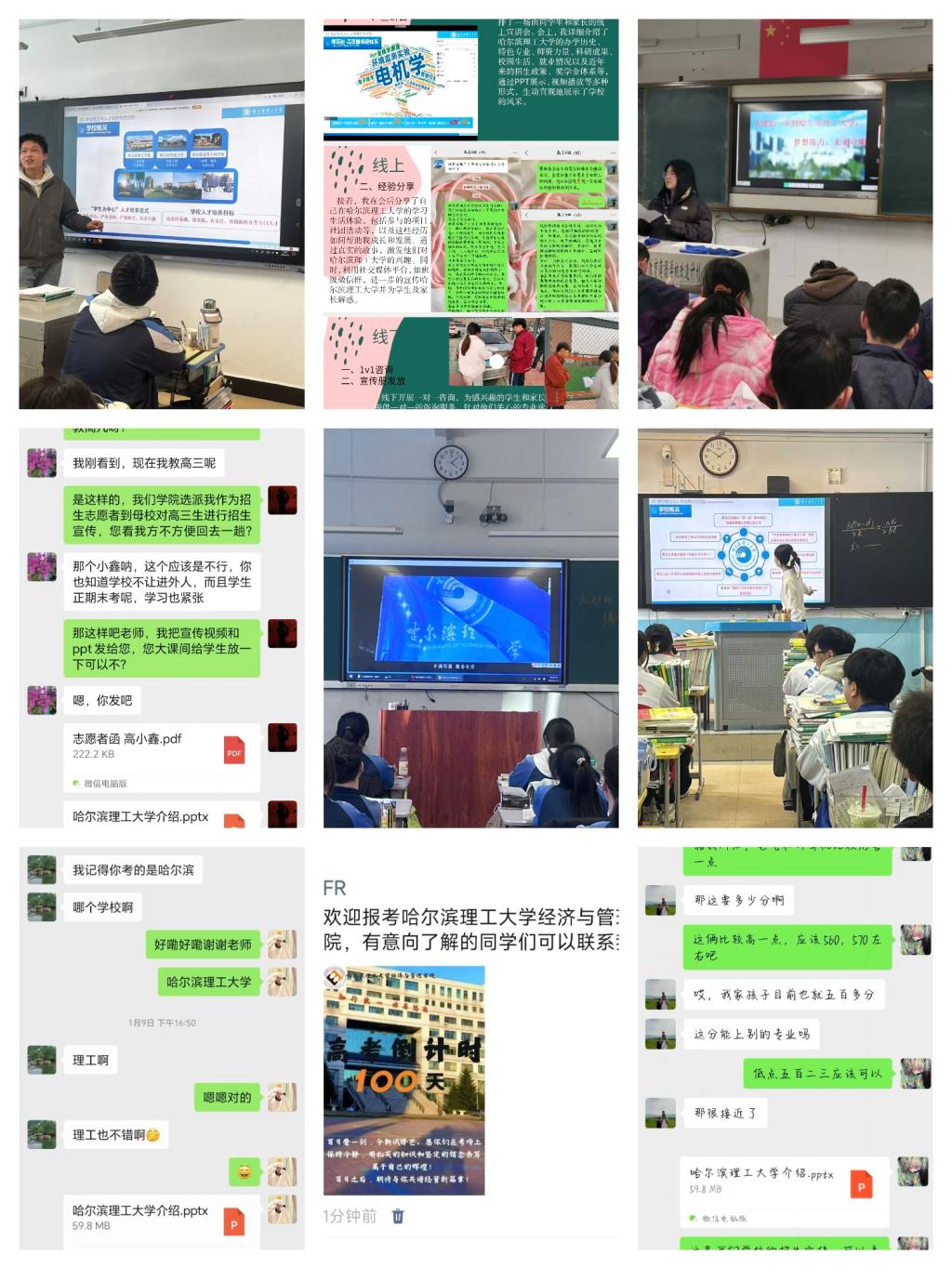 部分志愿者深入到自己的母校。他们提前与母校相关部门沟通协调,成功开展了生动有趣的汇报。在招生宣传汇报中,志愿者们结合自身在太阳成集团tyc33455ccwww的亲身经历,以生动的语言和鲜活的事例,向学弟学妹们描绘了大学生活的丰富多彩与充实美好。汇报结束后,志愿者们还留了联系方式,可以与高中生们进行一对一的面对面交流。面对学弟学妹们对于报考的种种疑问,从录取分数线到专业选择,从校园生活到未来发展,志愿者们都耐心倾听并给予详细且专业的解答。志愿者们还在学校门口发放学校的宣传手册。这些宣传手册涵盖了学校的基本概况、学科专业设置、师资力量、科研成果、校园文化活动以及历年招生录取分数线等重要信息,通过发放宣传手册,让学生和家长能够更直观、全面地了解学校和学院的相关资讯。