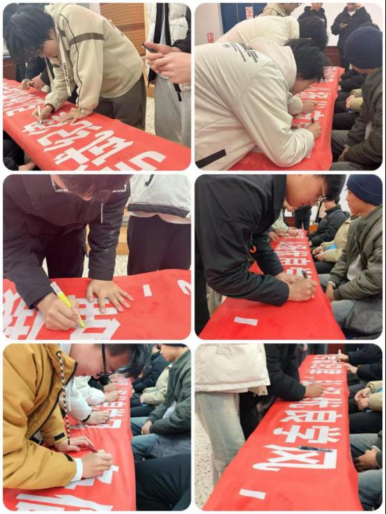 接着,辅导员与大家一起在承诺书和条幅上签字,用笔墨许下庄严承诺。这一笔一划不仅是对个人的鞭策,更是对集体学风建设的坚定支持。