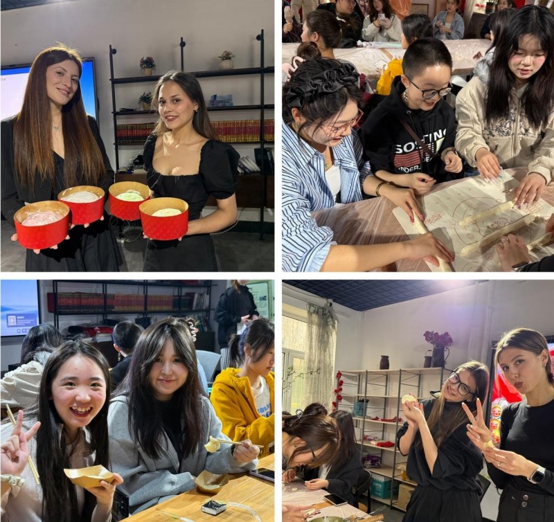 最后的美食互动将气氛推向高潮,俄罗斯同学手把手教中国同学包俄式饺子,大家围坐一团一边制作,一边分享趣事。等待饺子出锅的间隙大家一起做了俄罗斯游戏,情谊也在这一刻迅速升温。此外,俄罗斯的同学还贴心准备了Блины(俄式煎饼)、传统节日蛋糕供大家品尝。在欢乐氛围中,这场文化盛宴圆满落幕。