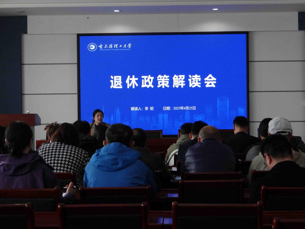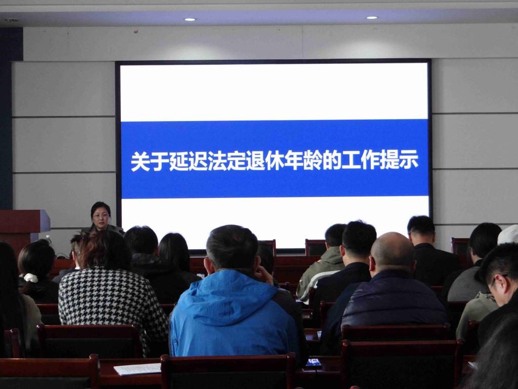 为深入贯彻落实国家关于渐进式延迟法定退休年龄及弹性退休制度决策部署,太阳成官网于2025年4月25日下午在教学主楼G1012会议室组织召开退休政策专题解读会。人事处处长李玥作专题政策解读,各二级单位人事工作负责人共计50余人参会。
