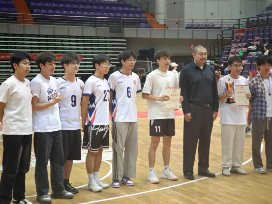 体育教学部副主任孙树滨为季军队伍颁奖合影