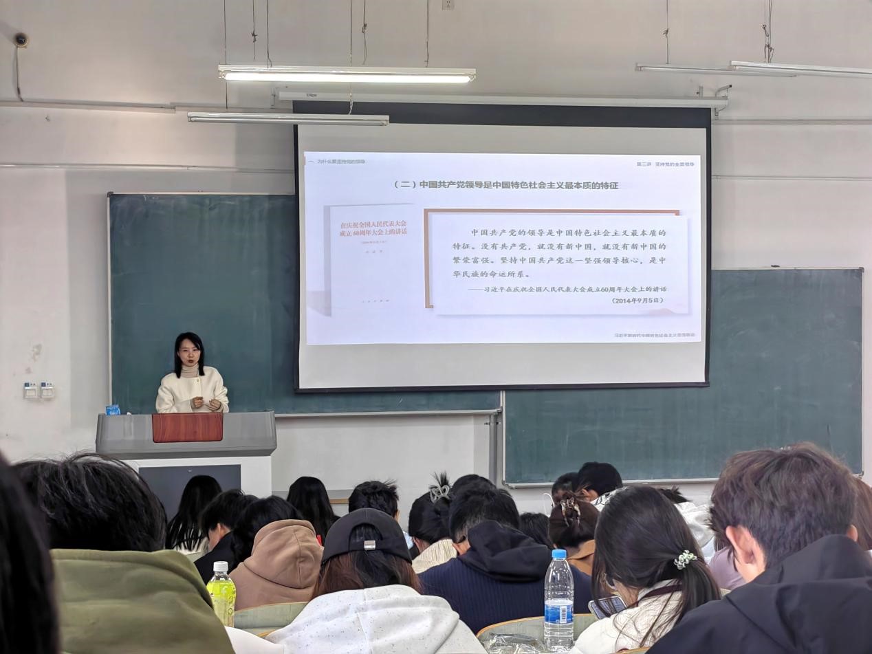 学院党校辅导员侯梦雪老师以“坚持党的全面领导”为主题,阐述坚持党的领导是中国特色社会主义最本质特征和最大优势,强调要增强“四个意识”、做到“两个维护”,在思想、政治、行动上要同党中央保持高度一致,引导学生拥护党的领导,积极进取,凝聚力量,推动党和国家事业不断向前发展。