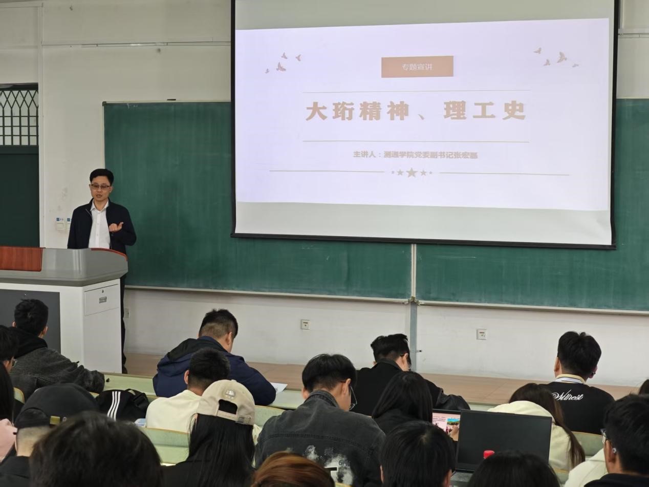 辅导员王博老师以“科技与文化的双向奔赴”为主题,以电影《哪吒2》和科技成果DeepSeek为例,阐述科技与文化的紧密联系,强调将技术融入人文关怀,推动传统文化与现代科技交融,呼吁新时代青年应肩负使命,要有志气挖掘文化基因、创新科技;要有底气构建知识结构、开展跨界协作;要有骨气突破技术封锁、化解文化冲突。