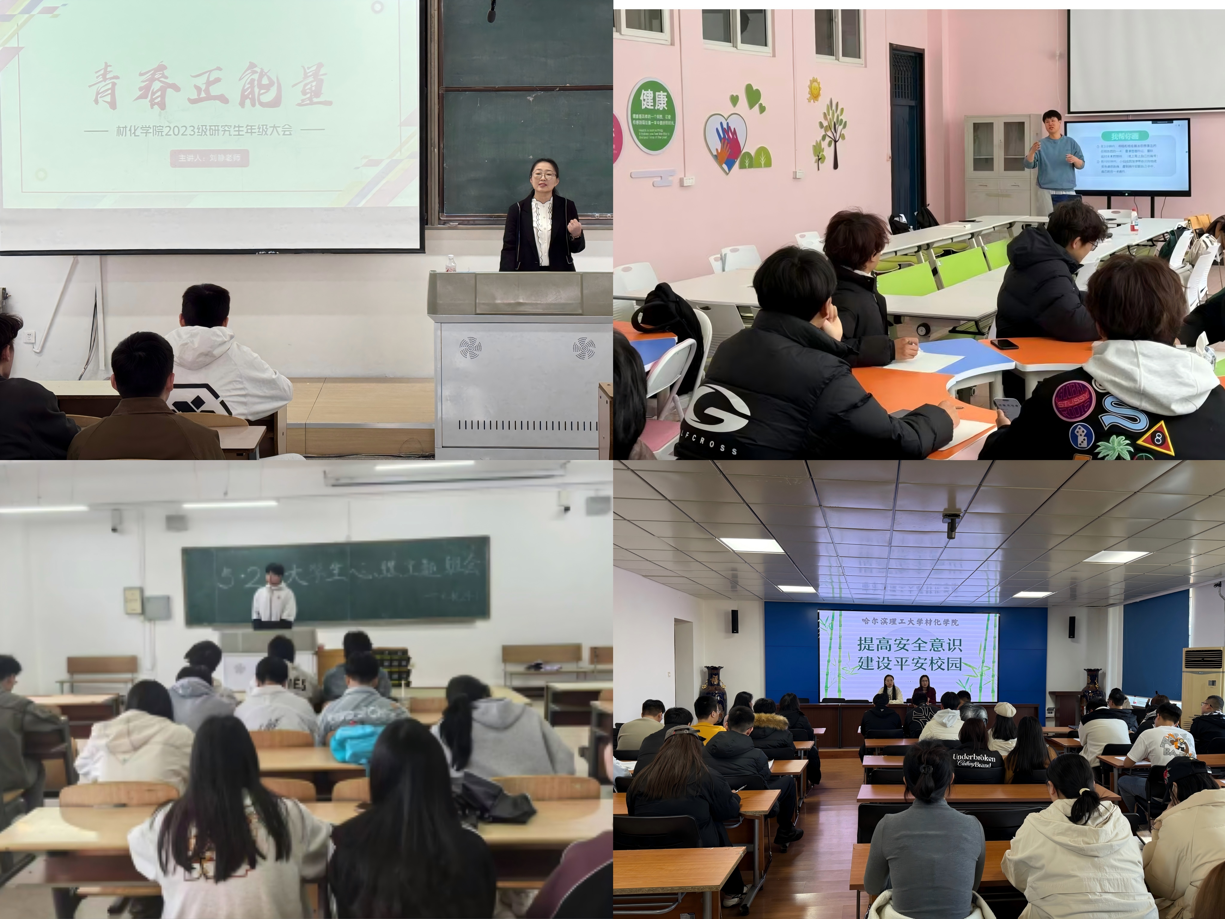 材化学院通过讲座、小型研讨会、游戏互动等形式,积极开展了主题班会活动。同学们在活动中积极参与,分享了自己的困惑和应对方法,提升了心理自我保护意识和调适能力。
