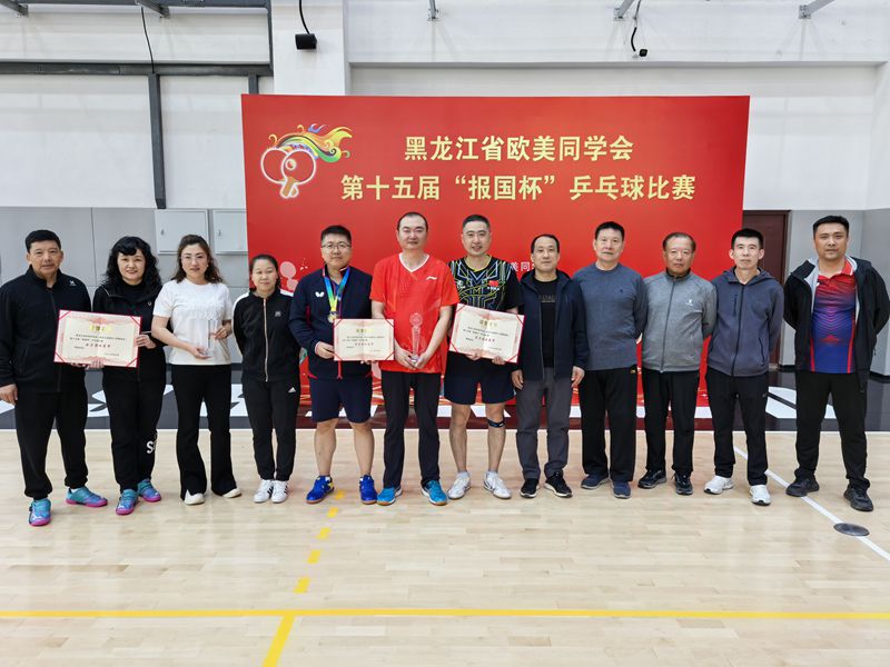 为增进留学人员身心健康、凝聚团结奋进力量,充分展现归国留学人员昂扬向上的精神风貌,近日,由黑龙江省欧美同学会主办,哈尔滨市欧美同学会和省欧美同学会乒乓球俱乐部承办的第十五届“报国杯”乒乓球比赛在哈尔滨学院体育馆举行。学校党委统战部积极组织并选派15名队员参赛。