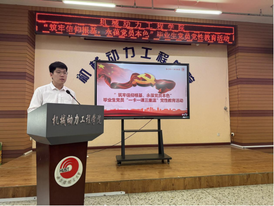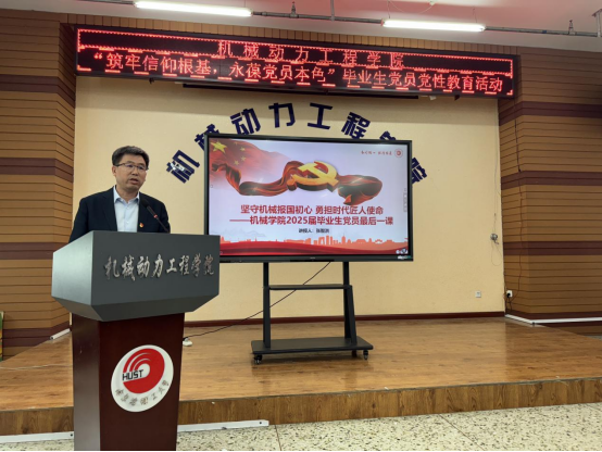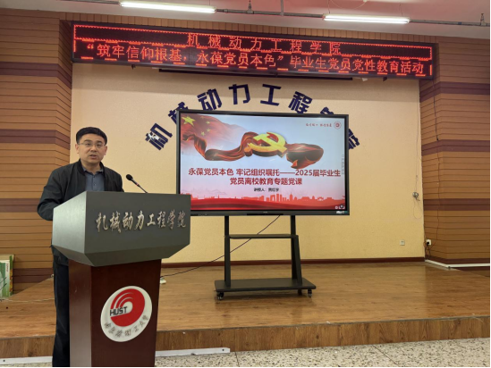 机械学院党委高度重视此次离校教育。活动伊始,贾红宇代表学院党委对全体毕业生党员圆满完成学业表示热烈祝贺。他强调,离校前的党性教育是党员教育管理的关键一环,是帮助大家明晰身份、强化责任、顺利转接组织关系的重要举措,希望大家珍惜这次学习机会,将组织的关怀与要求内化于心、外化于行。