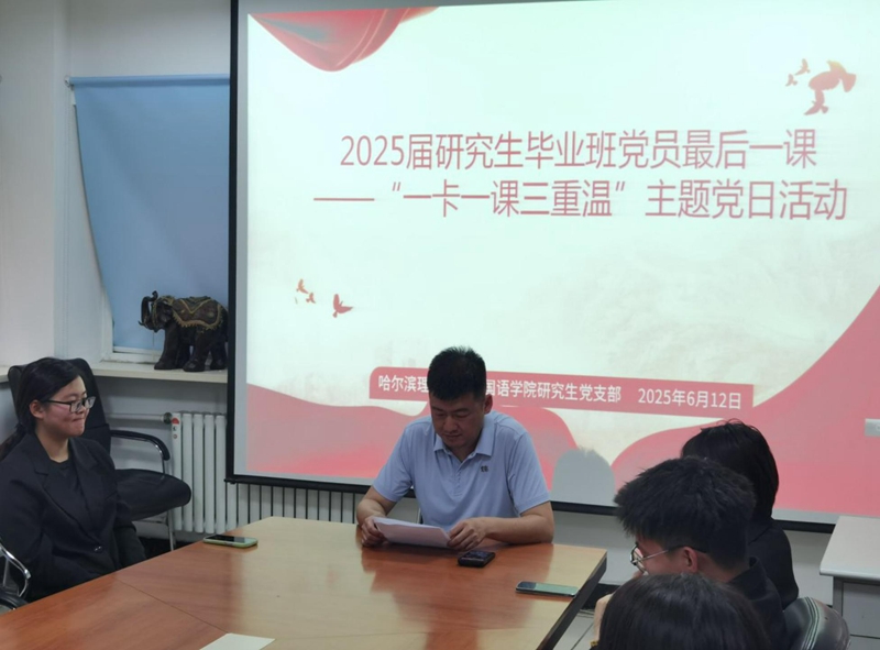 为切实深化开展学生党员党性教育,强化党员身份意识与责任担当,引导毕业生党员坚定理想信念,发挥先锋模范作用。6月12日,外国语学院党委组织开展毕业生党支部“一卡一课三重温”党性教育活动,21级学生党支部书记、2025届本科毕业生辅导员白雨卉,研究生党支部书记、2025届硕士毕业生辅导员马宁,分别在南区1号楼618和南区1号楼701室同步开展,学院党委副书记张宏亮出席活动,为即将踏上人生新征程的毕业生党员上了一堂深刻而难忘的“毕业前最后一次党课”。