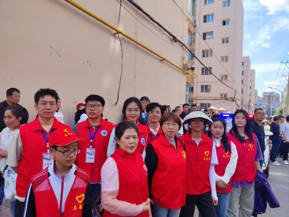 旭东中学分队志愿者与哈尔滨爱心志愿者协会共同合作维持考场外秩序