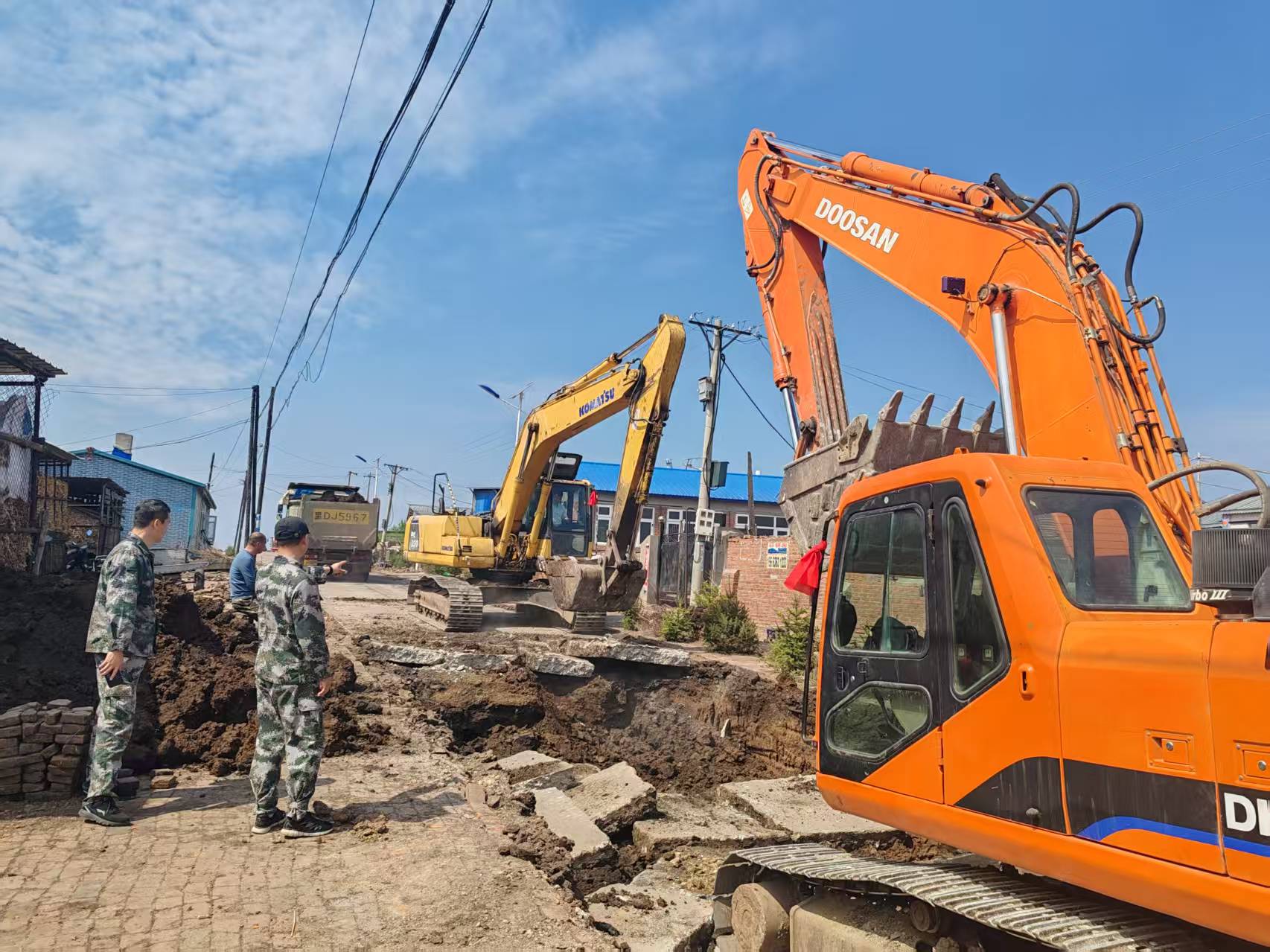 工作队查看施工情况