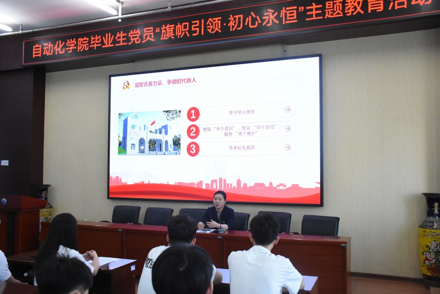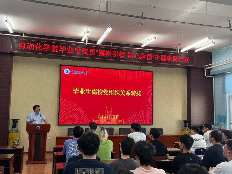 为深入学习贯彻习近平新时代中国特色社会主义思想,为让毕业生党员珍视党员身份,强化党性意识与使命担当,引导其在新征程中永葆政治本色,自动化学院党委于2025年6月19日组织开展了毕业生党员“一卡一课三重温”主题教育活动。学院党委书记张颖、副书记刘桂娟,团委副书记付宇、毕业班辅导员王圣哲及全体2025届毕业生党员参加活动,通过“一卡”精准指导、“一课”深化理论、“三重温”淬炼党性的形式,为毕业生党员上好离校前“最后一课”。