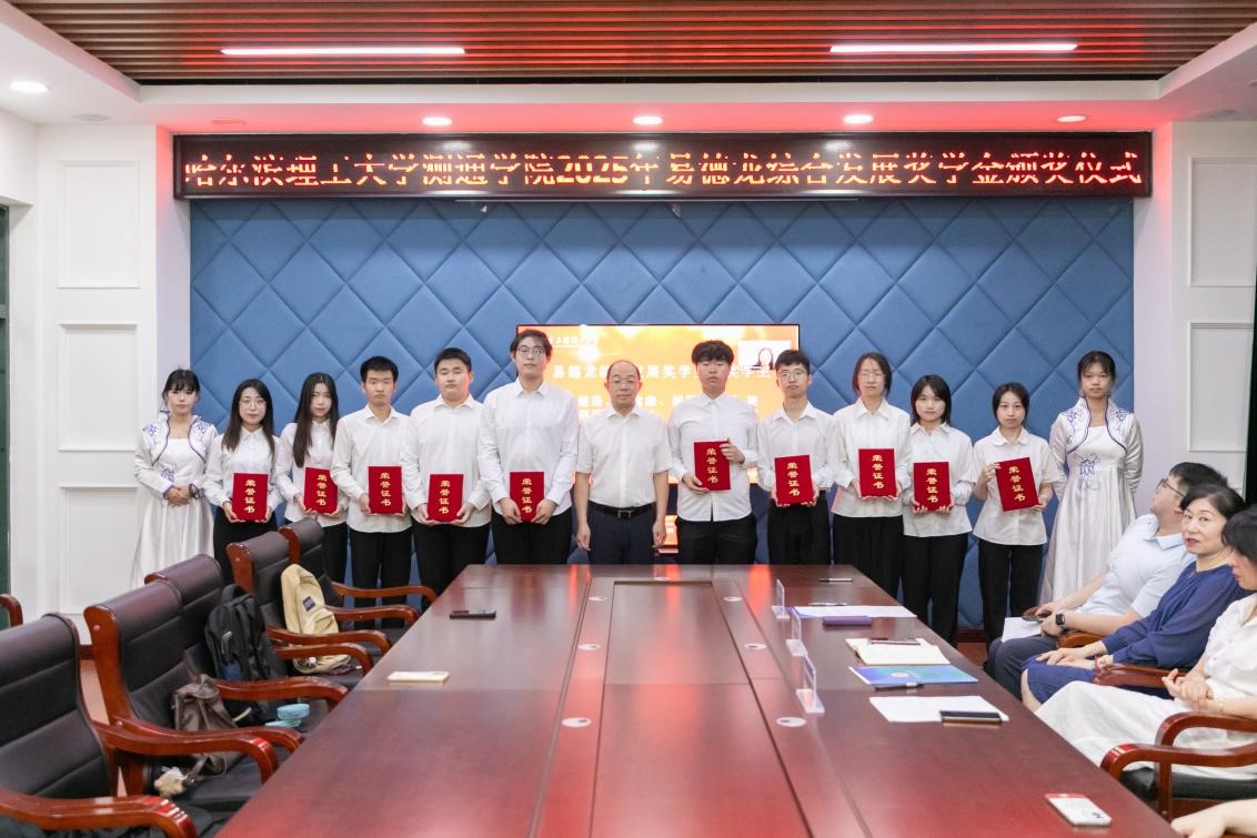 为深化校企合作育人成果,表彰激励优秀师生,6月27日9时30分,测通学院2025年“易德龙综合发展奖学金”颁奖仪式在教学主楼E1025会议室举行。苏州易德龙科技股份有限公司副总裁陈裕玲、测通学院党委书记黄春丽、院长吴海滨、全体辅导员老师、获奖学生及各年级学生代表共同出席本次活动。仪式由学院党委副书记杨芳主持。
