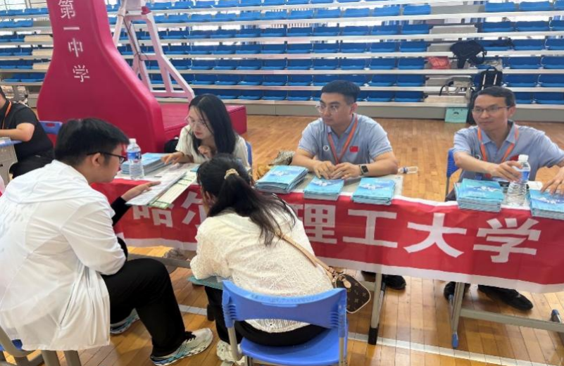 在招生咨询工作中,学院党委书记周长群、党委副书记郭宝鹏与人力资源管理系主任蒲明、市场营销系主任徐莹莹、工商管理系主任杨仲基、人力资源管理系党支部书记李永华、工商管理系党支部书记郭亮、实验中心主任周艳山、人力资源管理系鲍萌萌等教师分别赴哈尔滨市十三中、哈尔滨六中、鸡西一中、牡丹江一中、七台河一中和穆棱一中开展招生咨询工作。活动中,考生和家长围绕在咨询台前,结合自身兴趣、高考预估分数和未来发展规划,踊跃提问。问题涵盖了具体专业的课程设置、培养方向、就业领域、升学深造机会、校园生活条件等多方面。全体工作人员认真倾听每一位考生和家长的询问,结合最新招生政策和个人发展建议,逐一进行细致、清晰的解答。工作人员不仅详细向考生和家长详细介绍学院办学特色、学科优势和发展前景,还主动分发招生咨询手册,留下联系方式,方便后续深入咨询。通过面对面的交流,考生和家长学院的基本情况和育人环境有了更直观、更深入的了解,对未来入校深造充满了信心和期待。