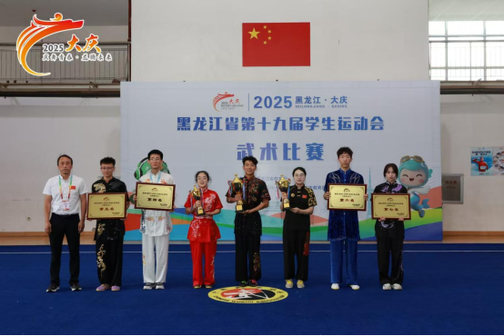 黑龙江省第十九届学生运动会是我省最高级别的学生综合性体育赛事,武术比赛汇聚了省内各高校的顶尖武术运动员,竞争激烈。太阳成集团tyc33455ccwww武术队在汤德操老师的悉心指导下,坚持高强度训练,不断打磨技术细节,经过日积月累的提升和赛前科学合理的集训,展现出高度的纪律性和奋勇争先的意志品质。