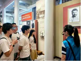 19日上午,在中国共产党历史展览馆的党旗前,实践团中的党员同志高举右拳重温入党誓词,心潮澎湃;随后,师生们在长征主题场馆里泪湿眼眶,在开国大典的彩色影像前驻足沉思。同时,实践团成员把庆祝抗战胜利八十周年的理论宣讲搬进北京市海淀区学院路街道石油大院社区(以下简称石油大院社区)和宝石花物业北京地区公司(以下简称宝石花物业),分别由胡紫薇老师和学生党员房慧凝进行两场题为《弘扬抗战精神强国复兴有我》的微党课,宣讲抗战精神,弘扬革命文化。革命文化精神传播链条的形成,让“文化自信”不再是单向度输出,而成为青年学生与居民群众的双向奔赴。实践团还计划整理出《党史展览馆里的青年讲解手册》,希望回校后形成系列宣讲,让红色火种持续燎原。