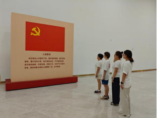实践团四名党员重温入党誓词 实践团成员在中国共产党历史展览馆大厅合影