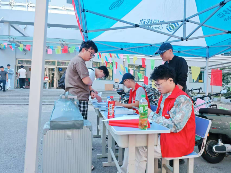 志愿者们身着统一服装,面带热情笑容,主动上前接过新生的行李,耐心引导完成“身份核验— 资料提交—一卡通领取—宿舍指引”全流程。“同学,这边请,你的宿舍在 四公寓,我陪你过去!”“这是你的一卡通,有疑问随时找我们”一句句贴心话语,让初入校园的新同学刚踏进校园,便感受到家一般的温暖。