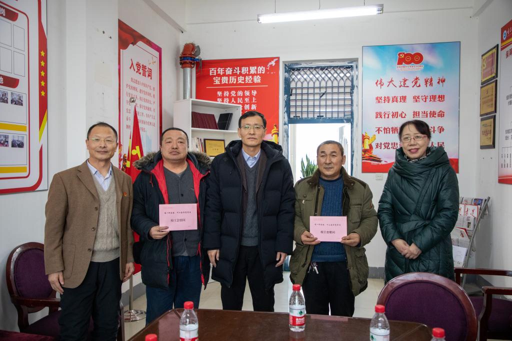学校领导代表学校为后勤困难职工发放慰问金
