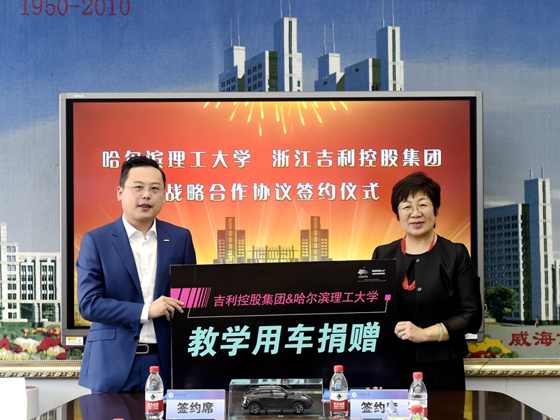 陆岩副书记、宋兆桓部长分别代表校企双方签署战略合作框架协议。吉利控股集团同时向学校捐赠教学用车。
