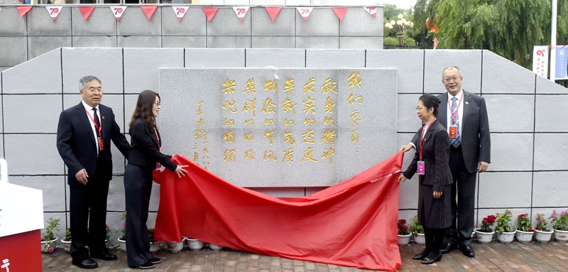 随后,校党委书记张洪涛、校长赵琳和大珩先生的学生殷景华老师、高玮老师共同为大珩先生题词浮雕揭幕。在学校30周年校庆时,大珩先生挥笔为我们题写:“我们要有:献身的精神,求实的态度,革新的气质,勤俭的作风,集群的性格,乐观的情绪”。这不仅是老校长一生人格品质的真实写照,也是对全体师生校友的殷切期望,更是哈理工人要永远传承、镌刻于心的精神品质。