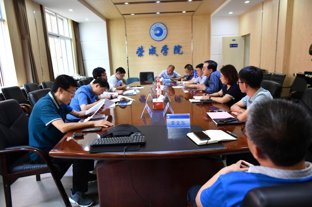徐向晨院长对威海市委市政府能够高度重视荣成学院的发展,深入到学院有针对性地了解学院情况,帮助学院破解难题表示非常感谢,徐院长首先介绍了荣成学院自08年开始招生以来的发展历史、招生状况、师资状况、教学设备、服务地方等方面情况。他指出,如何把握调整办学定位,确保教育教学质量,为了把学院建设好,与地方政府共建学院事关荣成学院生存与发展,解决好遗留问题是关键,目前初步草拟了四方协议,已经达成初步意向,还需要进一步完善,协议对如何解决办学经费、教师编制、师资配置、实验室设备配置等影响学院长远发展的瓶颈问题基本达成共识。徐院长强调,现在学院亟待解决的问题是事业单位法人机构的注册,该机构的注册可以解决财务、事业编制、科技项目申报等方面的问题,对今后学院师资队伍建设,吸引高质量生源,更好地服务经济社会发展具有重大意义。