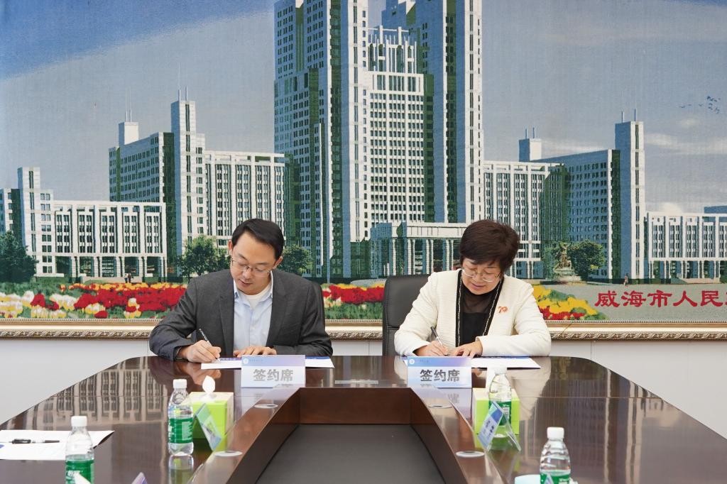 陆岩副书记与秦亮总监分别代表校企双方签署校企合作协议