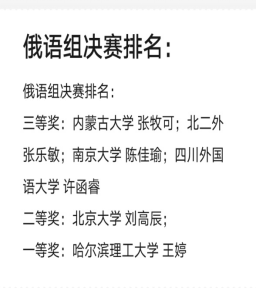 本次比赛参赛选手和参加高校数量为历史新高,选手水平也令人惊艳。这既反映了我国俄语专业高等教育的水平,也加大了选手间的竞争力。王婷同学语音纯正、功底扎实、学习严谨、十分刻苦,曾因成绩优异获得国家留学基金委公派留学的机会,在国立普希金俄语学院留学期间的学习和生活为其翻译功底的再提升奠定了坚实基础,除此之外,王婷同学身经百战,赛场经验丰富,获得过“哈尔滨-俄语之春”中俄大学生俄语竞赛一等奖,主持过俄语系圣诞文艺汇演,坚定的目标、不懈的进取让王婷同学出色地完成一次次挑战。这一切成绩都离不开学校教务处及学院领导的大力支持和培养,更离不开俄语系教师的坚守和努力,在备赛期间班主任徐佩、指导教师田欣欣都给予了王婷诸多的专业指导,鼓励王婷挑战自己、提升专业能力。同时,外国语学院全体辅导员平日为学生们提供各种锻炼的机会也是王婷同学此次获奖的必要条件之一。
