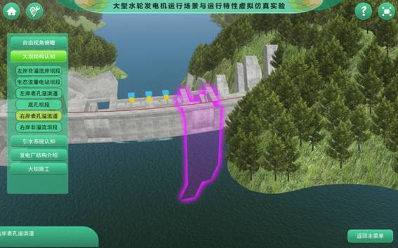 大型水轮发电机运行场景与运行特性虚拟仿真实验截图