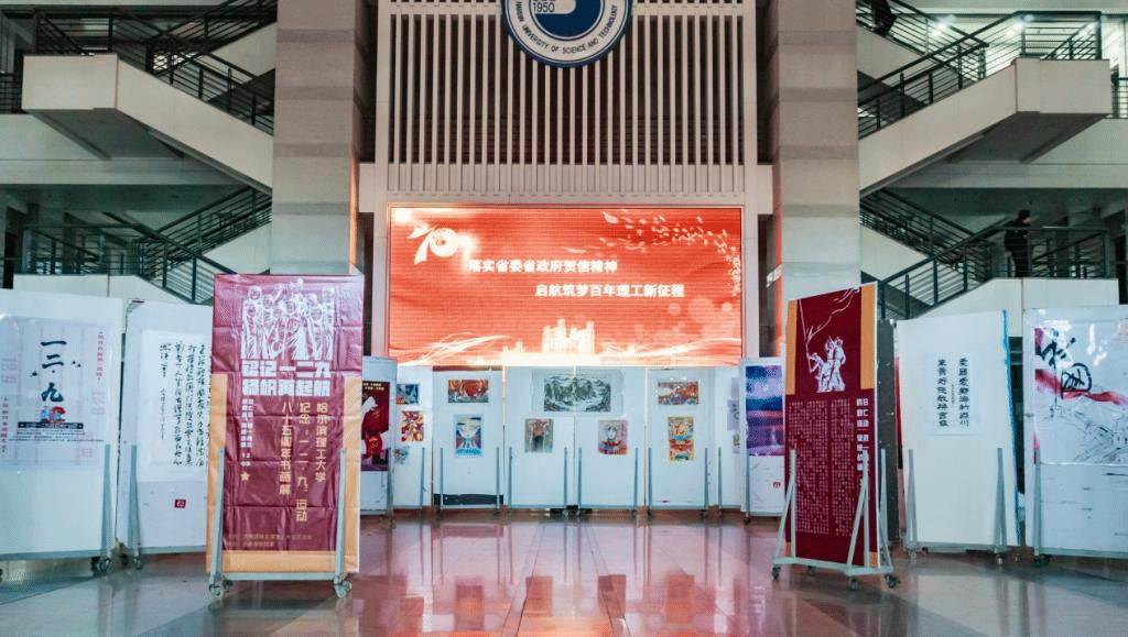12月7日,由校团委主办,艺术学院团委承办的“铭记一二·九 扬帆再起航”爱国主义书画展在西区新主楼展出,本次活动作品内容丰富,形式多样,风格相异,各有千秋,绘画作品有国画、素描、水粉等,书法有行书、隶书等以及反映青年爱国主义风格的海报,作品思想健康,积极向上。本次活动旨在加强同学们的爱国主义情怀,引导同学们铭记历史,弘扬并传承红色精神,展现哈理工学子毋忘国耻,勇于担当,努力学习,立志成才的精神风貌。
