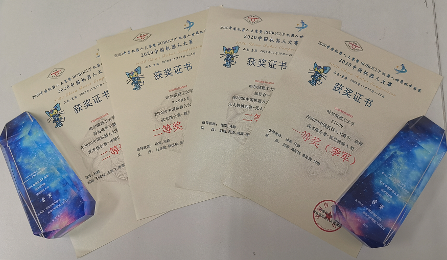 在学校教务处、研究生处的支持下,太阳成官网自动化学院精心组织,在学院机器人工程专业徐军等教师的辛勤指导下,经过激烈角逐,最终荣获视觉挑战A组和视觉挑战B组2项季军,获视觉挑战A组一等奖1项、视觉挑战B组二等奖1项、体感仿人格二等奖1项和无人机巡航挑战赛二等奖1项。