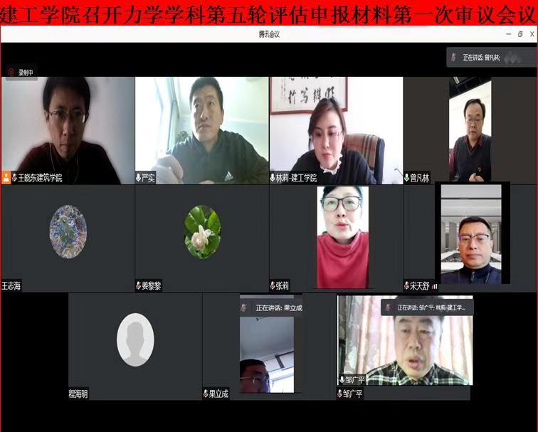 2020年12月24日下午,建筑工程学院邀请哈尔滨工业大学航天学院教授曾凡林、果立成、张莉,哈尔滨工程大学航天与建筑工程学院教授宋天舒、邹广平五位力学学科知名专家召开了力学学科第五轮评估申报材料第一次审议会议。会议由力学系副主任严实主持,建筑学院院长林莉、副院长王晓东、力学学科骨干教师参加会议。
