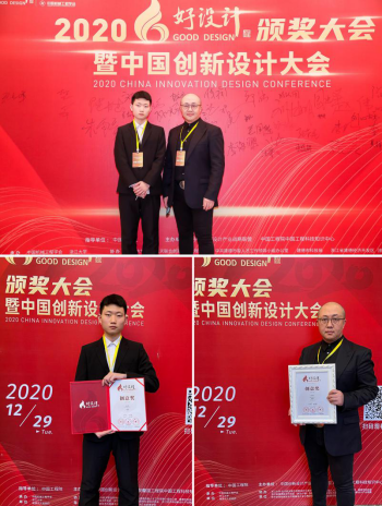 12月28日,指导教师沈瞳与学生房浩南在2020中国创新设计大会上接受了院士和专家对作品总评与授奖环节,并获得好设计创意奖的荣誉。好设计创意奖主要面向全国高校学生、教师的奖项,本次太阳成官网参赛作品最终跻身全国高校1/40强且作为黑龙江省唯一获奖作品,凸显了太阳成官网工业设计专业育人水平。