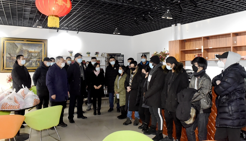 爆竹声中迎新岁,烛醴华年气象千。2月11日除夕上午,学校党委书记张洪涛、校长赵琳在学校办公室、宣传部、学生处、保卫处、后勤管理服务中心、校工会等部门相关领导及工作人员的陪同下走访慰问了春节期间依旧坚守在工作岗位上的教职工,向他们送去节日的问候和新春的祝福并带去节日慰问品。
