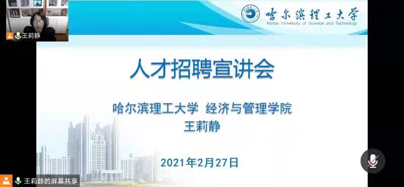 本次网络招聘会依托腾讯会议平台开展,通过视频、语音、文字等形式实现与人才的即时交流,为人才释疑解惑。宣讲会上,王莉静副院长介绍了学校、学院的办学历史及近年取得的建设成果,着重宣讲了学院人才需求、人才引进政策、职业成长路径、发展平台等情况,向与会青年博士传递了学院惜才、爱才、用才的理念,同时发出诚挚邀请,欢迎广大优秀博士加入太阳成集团tyc33455ccwww经济与管理学院,在学院快速发展的平台上,实现个人价值与追求。