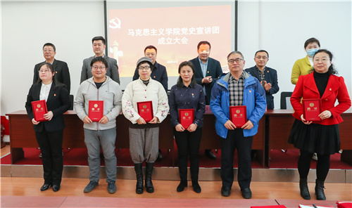 会上,党委宣传部部长姜国玉宣读宣讲团成立的决定、组织机构及成员名单,并作了讲话。他对宣讲团的成立表示祝贺,马克思主义学院抢抓全党上下开展党史学习教育的有利契机,学院遴选了在党史方面有研究的专家、教授、知名学者以及本硕优秀大学生,率先成立的专项宣讲团队。必将推动党史学习教育的深入开展。希望全体成员依托学科和专业优势,组成有深度又有温度、讲真理又讲真情、树信仰又树信心的宣讲队伍。