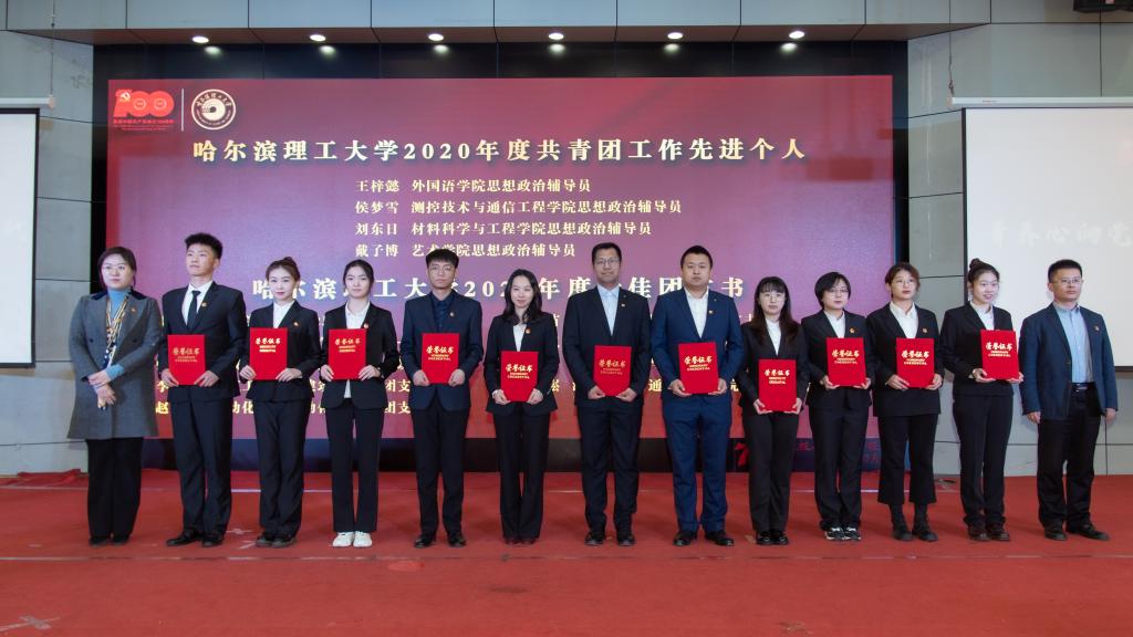 校党委组织部副部长乔林、校团委副书记曹石为2020年度“共青团工作先进个人”“十佳团支书”代表颁奖