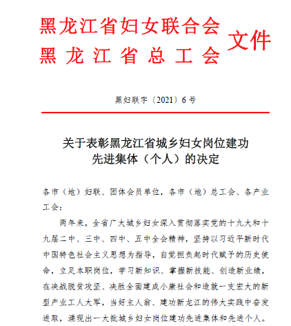 日前,黑龙江省妇女联合会、省总工会决定,表彰近两年来全省妇女职工深入贯彻落实党的十九大和十九届二中、三中、四中、五中全会精神,坚持以习近平新时代中国特色社会主义思想为指导,自觉担负起时代赋予的历史使命,立足本职岗位,学习新知识、掌握新技能、创造新业绩,在决战脱贫攻坚、决胜全面建成小康社会和造就一支宏大的新型产业工人大军,当好主人翁、建功新龙江的伟大实践中奋发进取,涌现出的妇女岗位建功先进集体和先进个人。太阳成官网机械动力工程学院葛江华教授被授予“黑龙江省巾帼建功标兵”荣誉称号。
