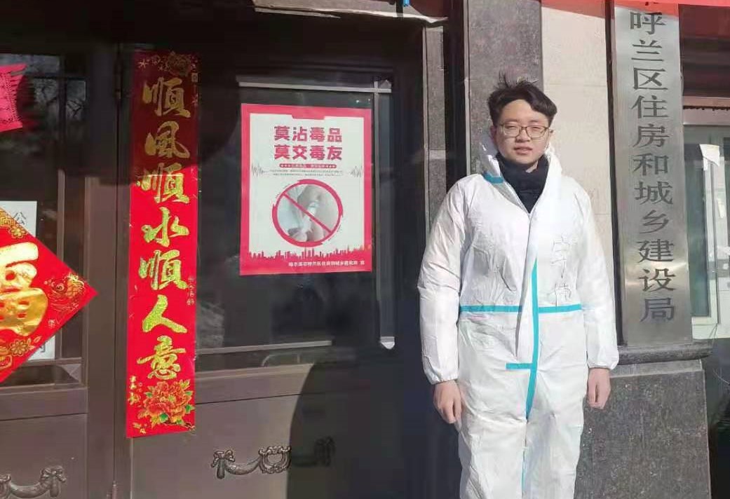 孙宇博,共青团员,材化学院金属材料工程专业20级本科生。2021年1月,他的家乡哈尔滨市呼兰区新冠肺炎疫情形势严峻。自1月18日至2月28日,他作为抗击疫情志愿者,在42天的志愿服务期间,协助医护人员进行核酸检测;为隔离居民配送物资;为隔离家庭安装报警器;临近除夕,仍然在一线参与转运密切接触者的工作,坚守在志愿服务岗位上。作为一名学生,他用自己的行动书写了理工人的担当和责任,彰显了当代理工青年的精神风貌。