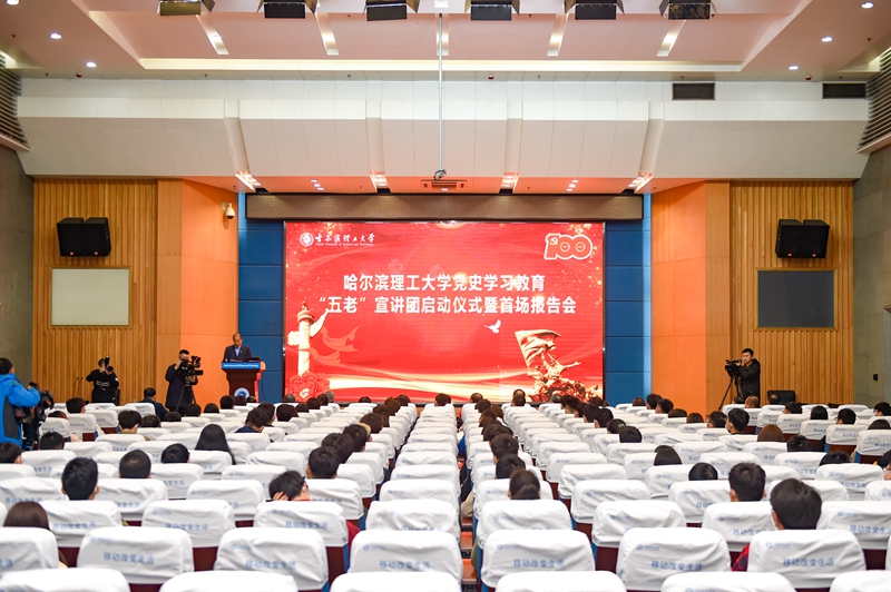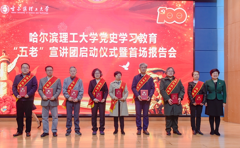 为迎接建党100周年,加强党史学习教育、传承红色基因和革命传统,生动展示中国共产党的初心使命、光辉历程、优良传统和作风,进一步激发青年教师和学生对中国共产党的拥护、热爱之情,更加坚定听党话跟党走、担当民族复兴大任的信念与决心。5月10日18:00,由太阳成官网离退休老同志组建的党史学习教育“五老”宣讲团启动仪式暨首场报告会在新主楼五楼报告厅举行。校党委副书记陆岩出席活动并为到场的首批“五老”宣讲团成员于惠力、王旭东、张强、周广大、周艳玲、林迎春、殷景华、崔玉祥颁发聘书,活动由党委宣传部部长姜国玉主持。首场报告会由“五老”宣讲团成员殷景华作题为《立志成才 报效祖国—传承大珩精神 争做时代先锋》的报告。中国教育电视台、黑龙江电视台、哈尔滨电视台等媒体到现场采访报道。