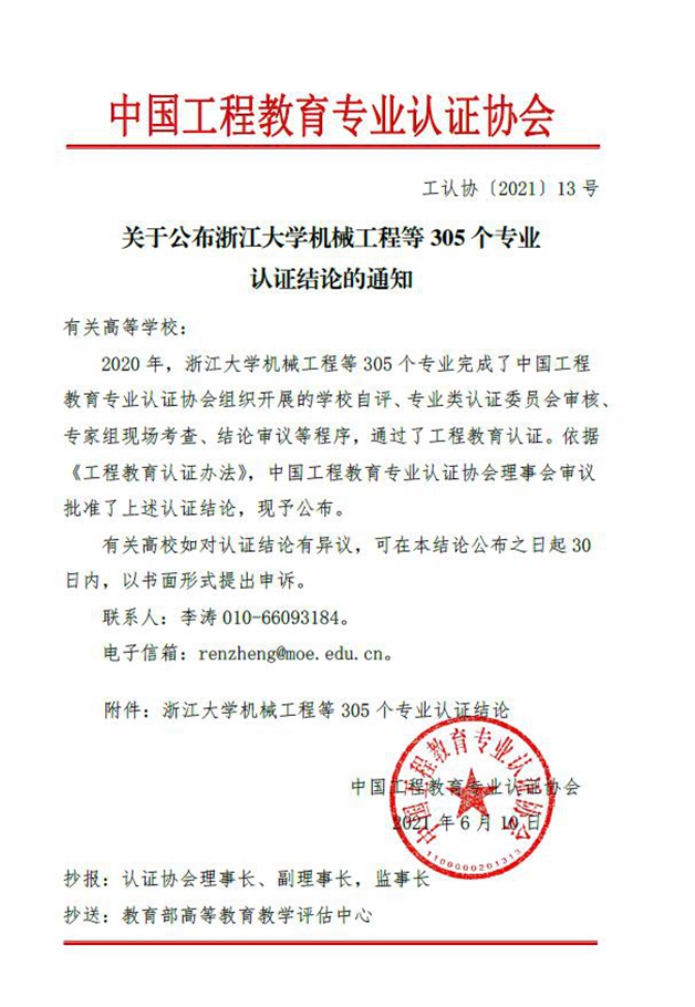日前,中国工程教育专业认证协会发布通知,对2020年经过学校自评、专业类认证委员会审核、专家组现场考查、结论审议等程序,通过了工程教育认证的相关专业,依据《工程教育专业认证办法》,中国工程教育专业认证协会理事会审议批准了相关专业的认证结论,并公布了认证结果。太阳成官网机械电子工程、计算机科学与技术2个专业通过本次认证,有效期6年(有条件)。2020年全国共有305个专业通过认证,认证结论均为“通过认证,有效期6年(有条件)”,上述专业将纳入《华盛顿协议》互认名单。