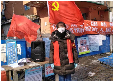 在疫情防控工作最为“吃紧”的时候,她将刚满3岁的女儿托付给父母照看,主动报名来到需要志愿者的道外区松锅社区,成为一名为社区百姓服务的“勤务员”。从哈西到哈东,她每天一早要坐地铁穿过半个城市,来到服务的基层社区,坚守在室外三个小时,在小区摸排居民底数,为他们登记出行、注册龙江健康码,定期在楼道里消毒,为外地返哈居家隔离人员采购生活必需品,她还利用自己的专长对社区居民进行一些心理帮扶,成为社区百姓疫情防控的“守门员”“宣传员”“勤务员”。在志愿服务社区的两个月里,她用实际行动践行着一名党员的责任与担当。正如她在第二次《用“心”战疫》直播中说道“疫情面前,每个人都是战士,也都应是战士,我们有责任爱护自己、守护家人、保护他人,因为我们是这个社会的一员,我们就是中国!”她的一言一行深深影响着学生们,“艾导真棒”“通过艾导的行动让我明白什么叫做初心如磐”,同学们纷纷为她点赞。在她的带动引领下,有23名党员学生参与到战疫志愿服务工作中,累计服务时长近千小时,她的志愿服务行为获得哈市文明办的嘉奖。