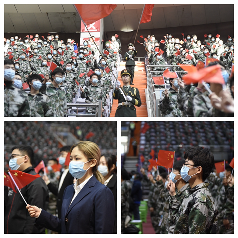 视频短片《梦想启航》《院长寄语》的播放,为开学典礼开启了温馨精彩的暖场氛围。上午9时,以“砥砺家国情怀坚定奋斗信念”为主题的2021级新生开学典礼在庄严的升国旗、奏唱国歌声中正式开始。