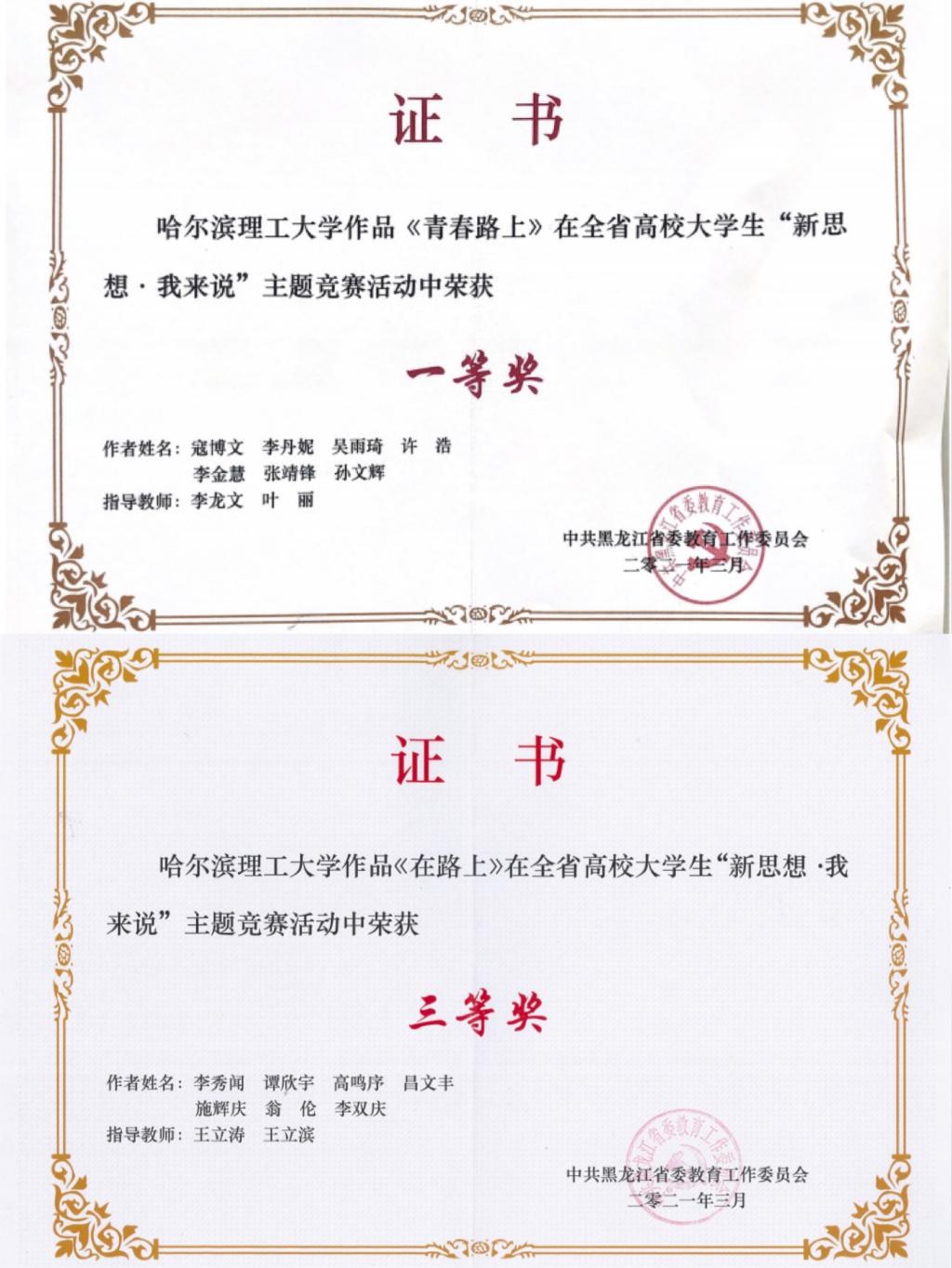 “新思想我来说”省赛获奖证书