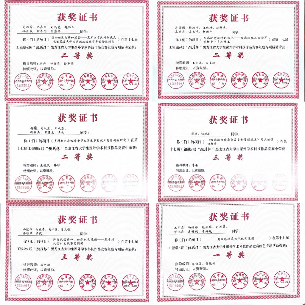挑战杯“红色专项”省赛获奖证书